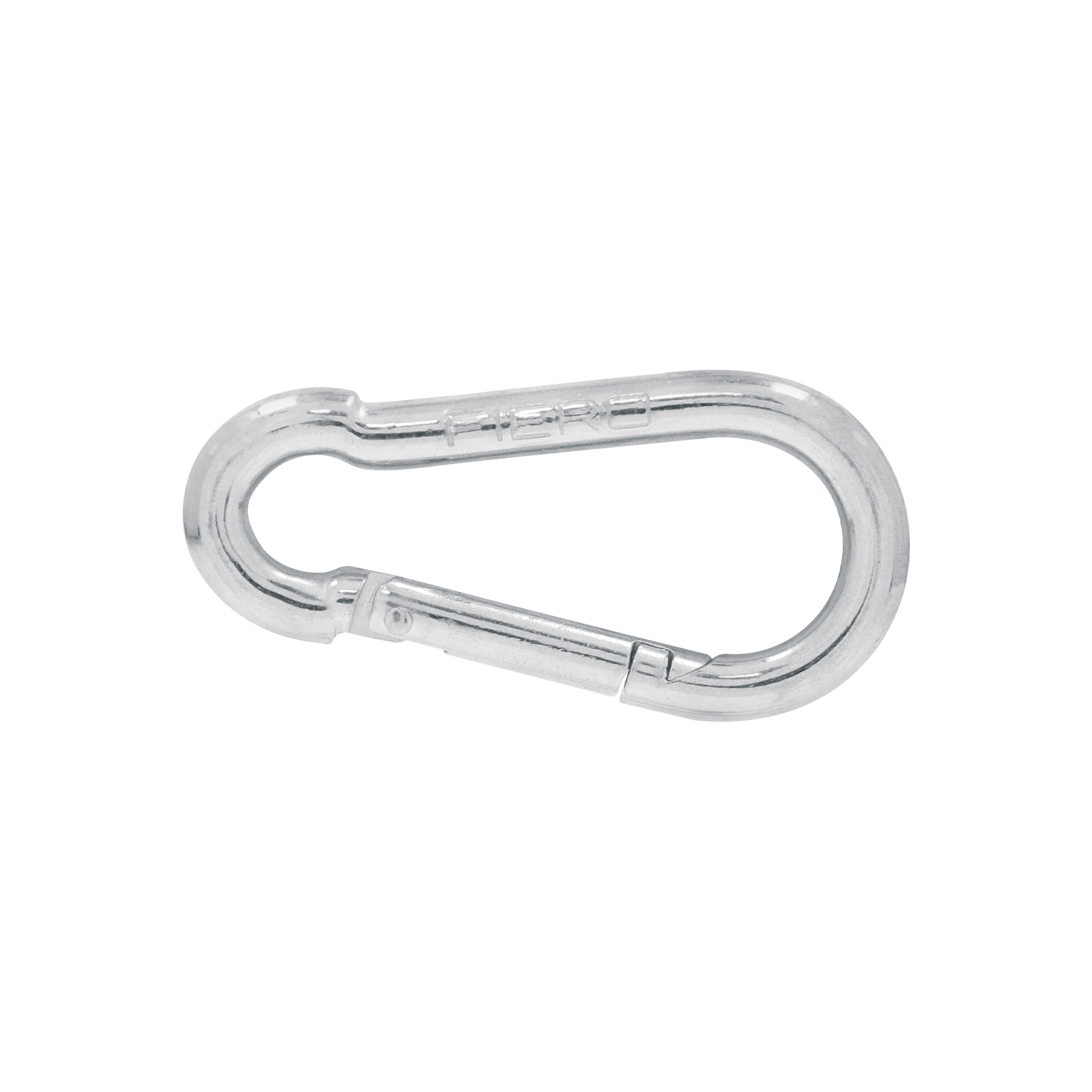 Fabricado en acero al carbono, acabado galvanizado. Cierre fácil y rápido. Resistente a la corrosión. Ideal para conexión instantánea de cables y cuerdas. No exceder límite marcado.