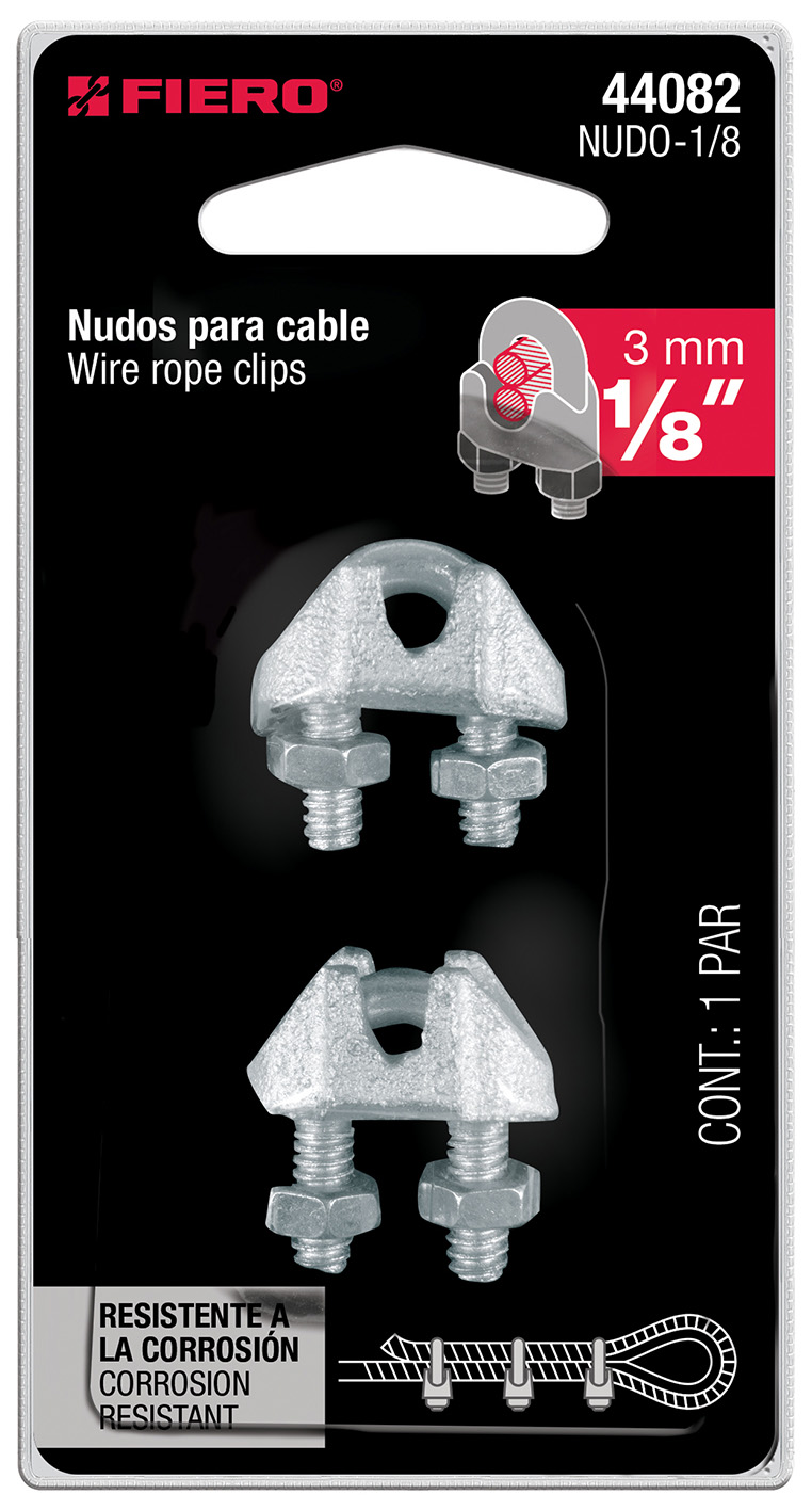 BLISTER CON 2 NUDOS (PERROS) DE HIERRO PARA CABLE DE 1/8" FIERO