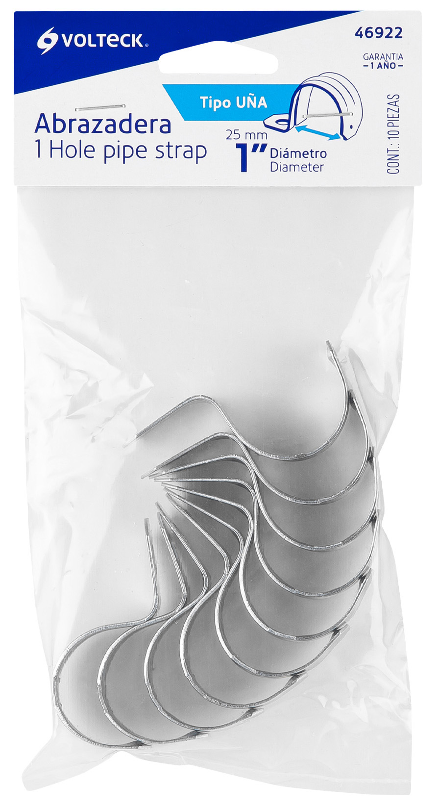 BOLSA CON 10 ABRAZADERAS TIPO UÑA DE 1" PARA TUBO PARED DELGADA VOLTECK