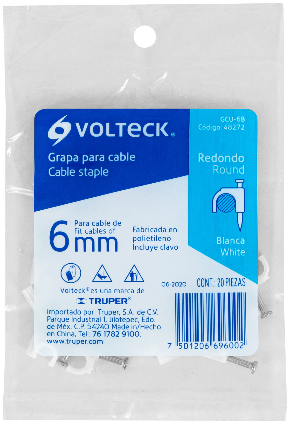 BOLSA CON 20 GRAPAS BLANCAS DE 6 MM PARA CABLE REDONDO VOLTECK