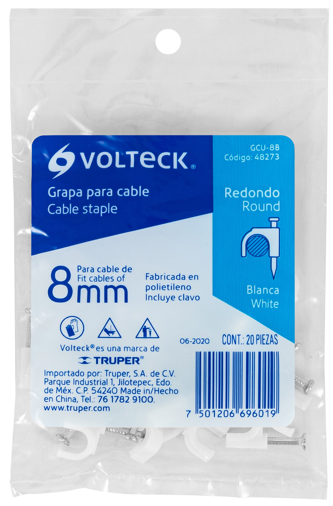 BOLSA CON 20 GRAPAS BLANCAS DE 8 MM PARA CABLE REDONDO VOLTECK