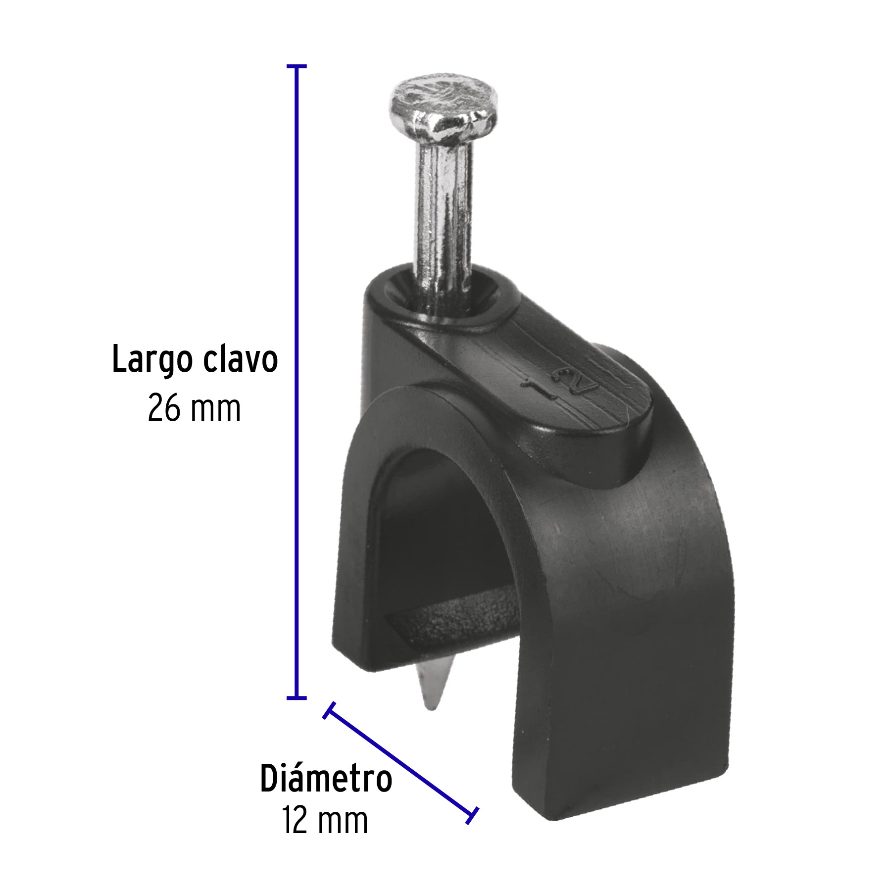 • DescripciónFabricadas en polietileno. Incluye clavo. Para cables coaxiales o cables redondos.
