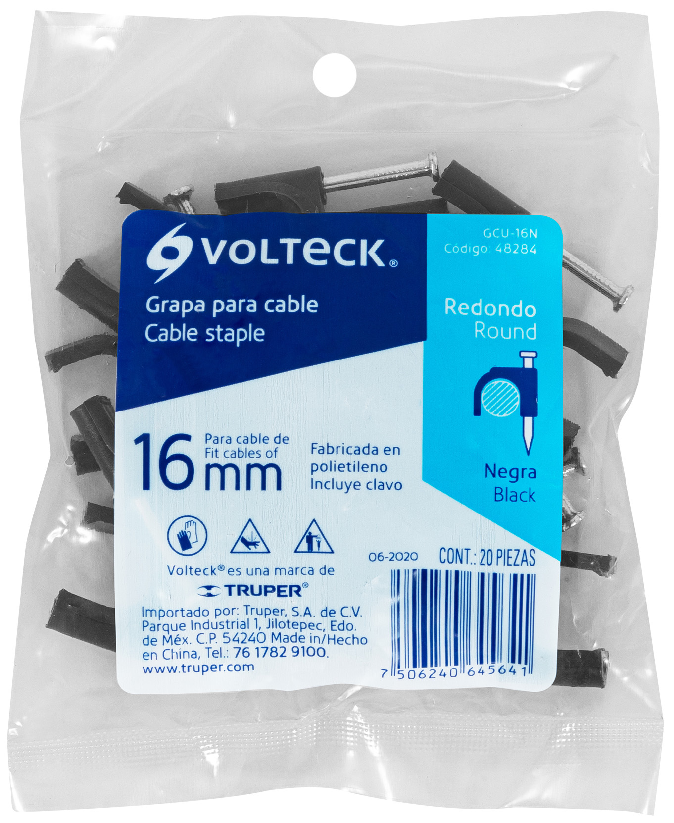 BOLSA CON 20 GRAPAS NEGRAS DE 16 MM PARA CABLE REDONDO VOLTECK