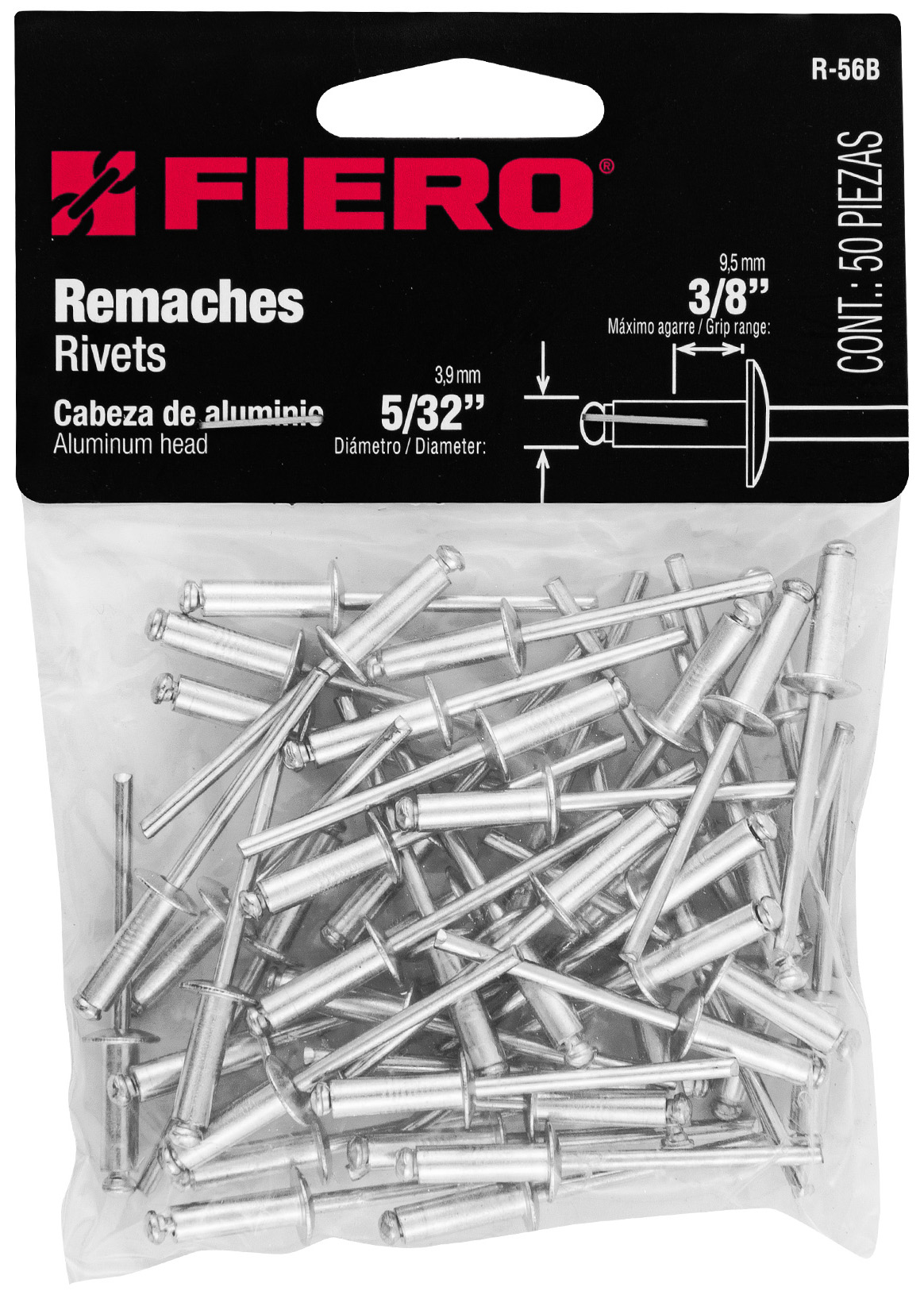 BOLSA CON 50 REMACHES DE 5/32" X 3/8" DE ALUMINIO CON MEDIDA DE ALA DE 5/16" FIERO