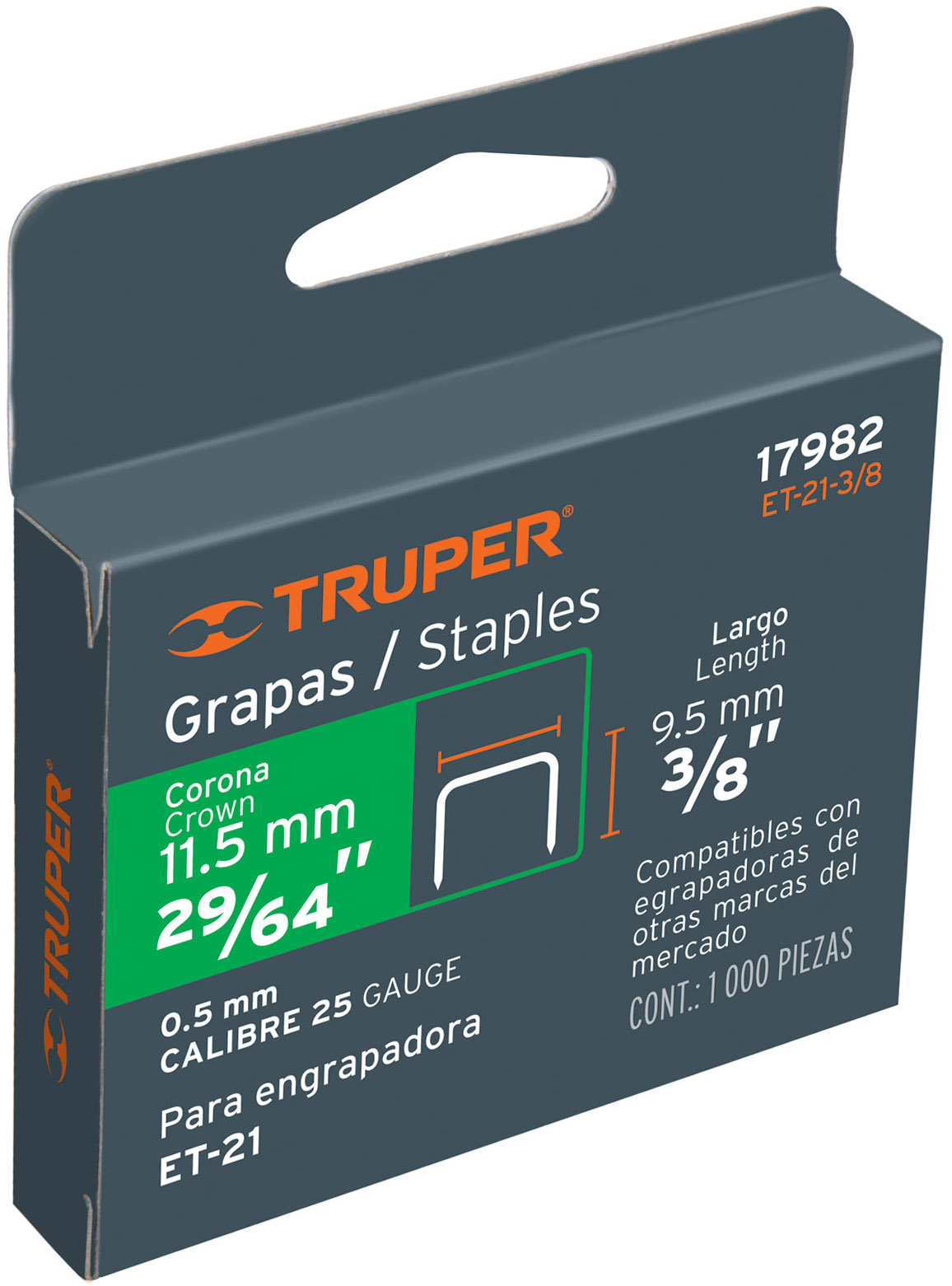 DescripciónEspesor: 0.5 mm. Corona: 11.2 mm. Fabricadas de acero. Ideal para engrapadora modelo ET-21 marca Truper®. Compatible con engrapadoras de otras marcas del mercado.Comentarios0 Espesor: 0.5 mm. Corona: 11.2 mm. Fabricadas de acero. Ideal para engrapadora modelo ET-21 marca Truper®. Compatible con engrapadoras de otras marcas del mercado. Escribe una reseña No hay comentarios aún