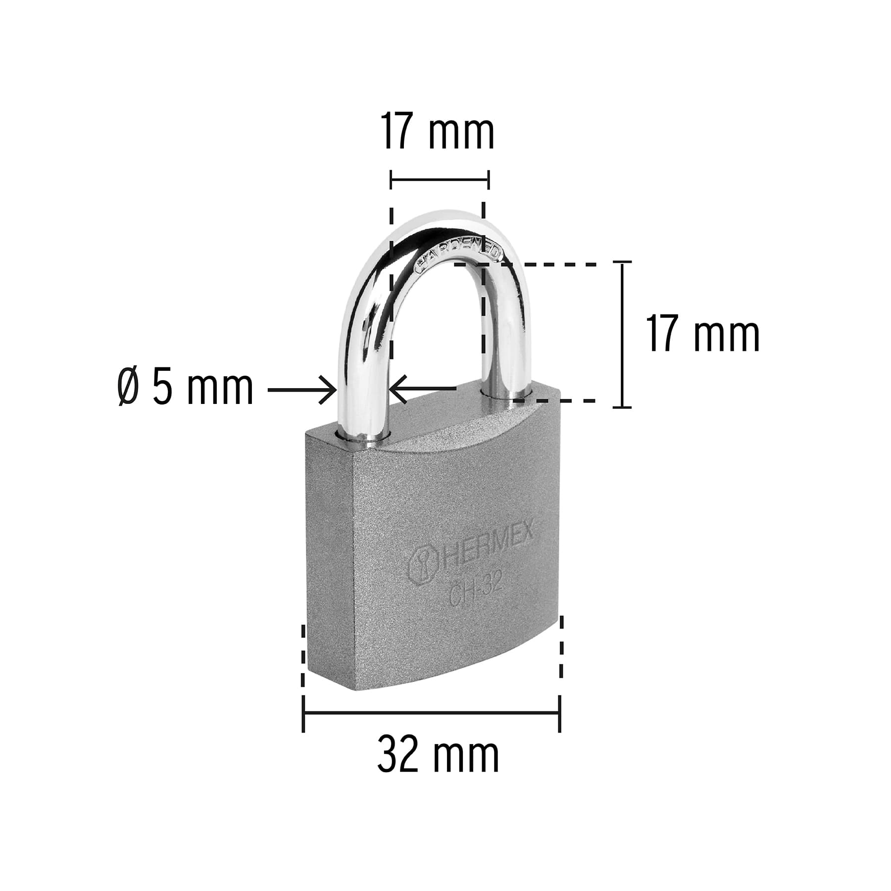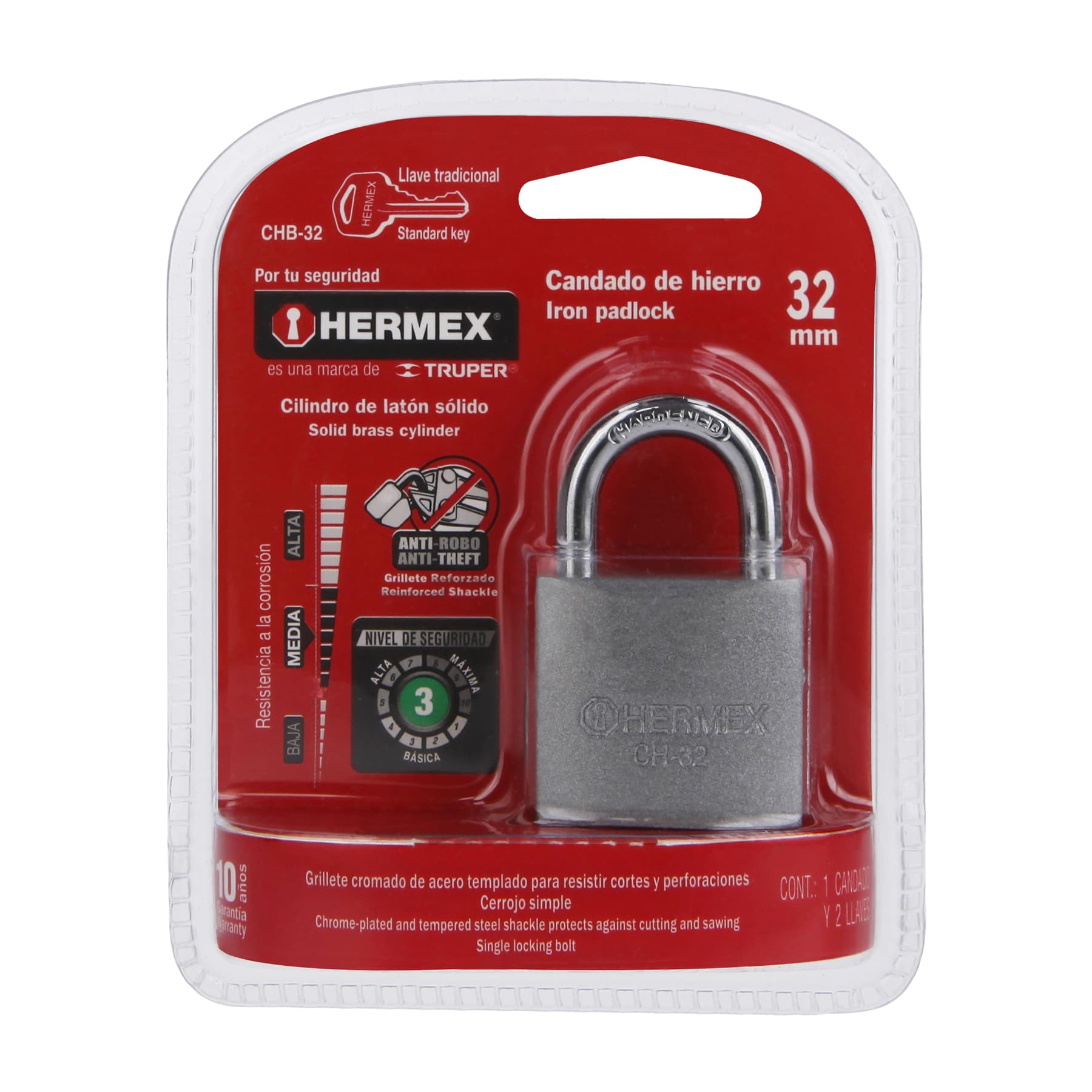 Cuerpo de hierro en una sola pieza y gancho corto reforzado de acero con acabado cromado Seguro tipo perno seguridad estándar Cilindro de latón sólido con 5 pines que brinda resistencia a robos Mecanismo interno resistente a la corrosión