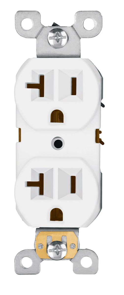 CONTACTO DUPLEX DE 2 POLOS Y 3 HILOS DE 20 AMP ESTANDAR EN BLANCO VOLTECK