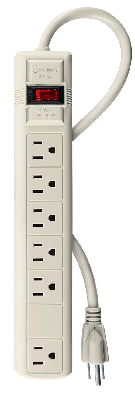 Fabricado en ABS y PVC. Interruptor con luz indicadora. Ideal para conectar televisores, video juegos, equipos de cómputo, audio y video. Protege equipos contra sobrecarga de voltaje.