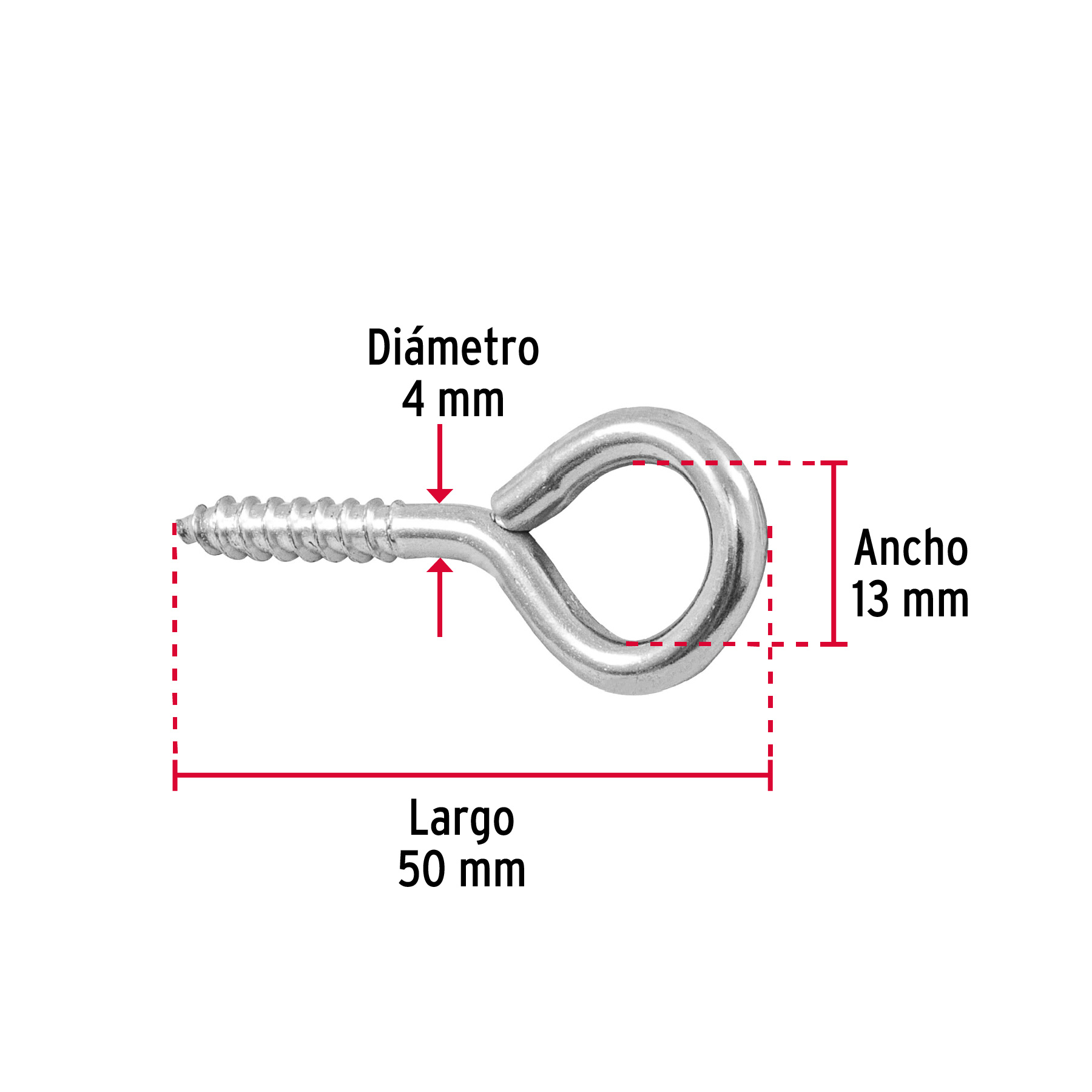 Fabricadas en acero galvanizado resistente a la corrosión. Fácil de instalar. Rosca para madera o taquete. Ideal para sostener objetos colgantes.