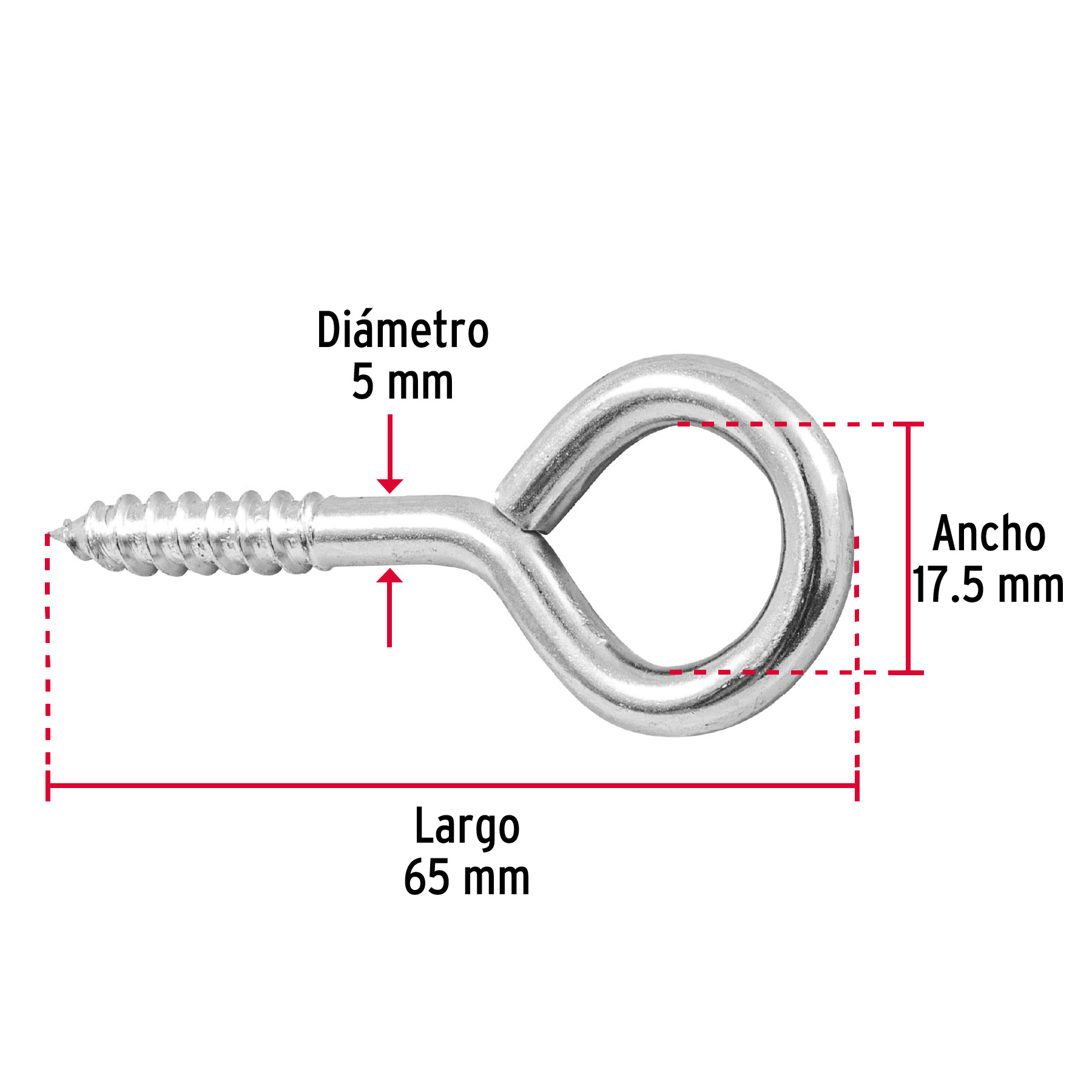 Fabricadas en acero galvanizado resistente a la corrosión. Fácil de instalar. Rosca para madera o taquete. Ideal para sostener objetos colgantes.