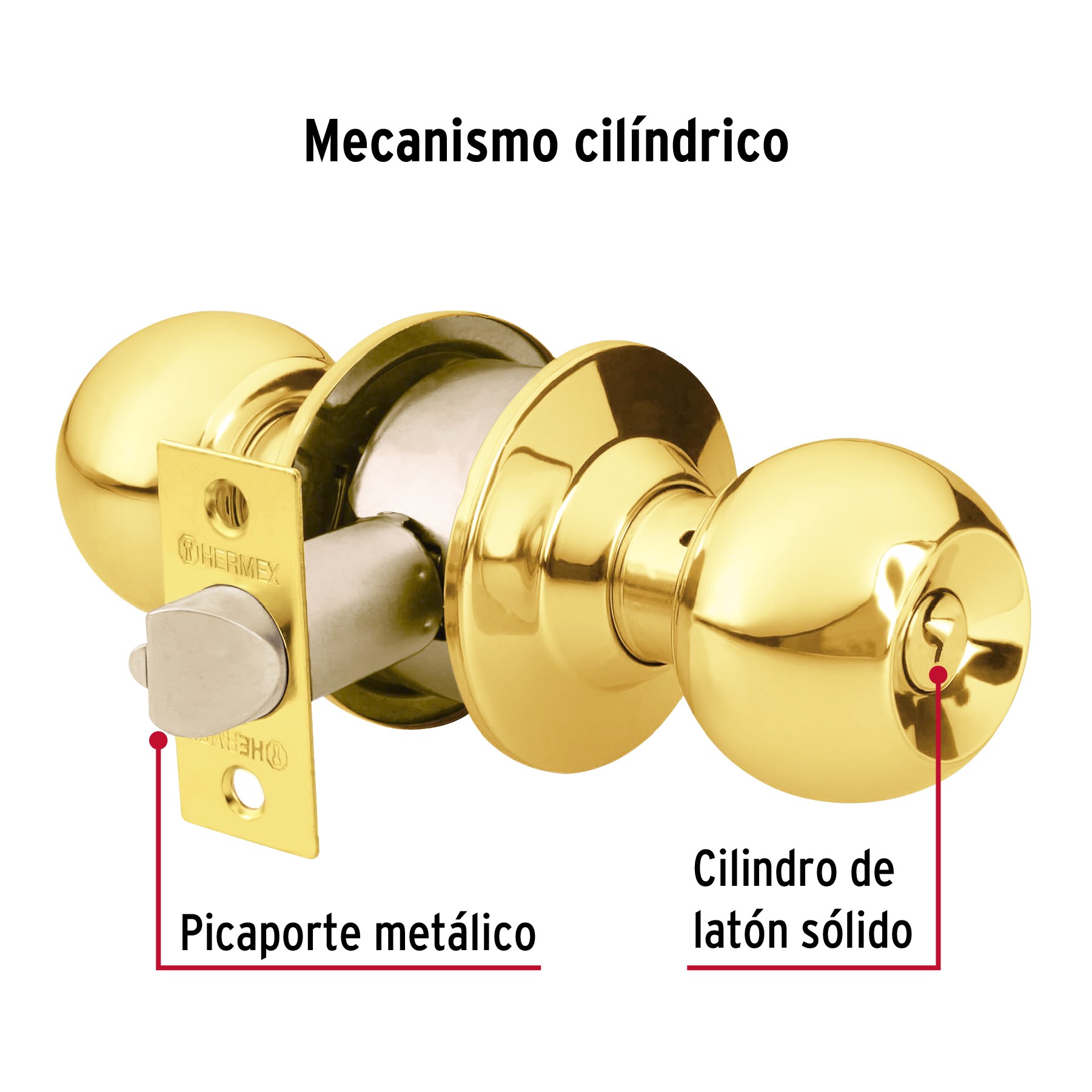 Cerrojo con botón de emergencia al exterior y botón de seguridad al interior. Mecanismo cilíndrico con cilindro de latón sólido. Perilla y escudo de acero inoxidable, acabado cromo mate. Para colocación en puertas con espesor de 1-1/4" a 1-3/4" (32 a 45 mm).