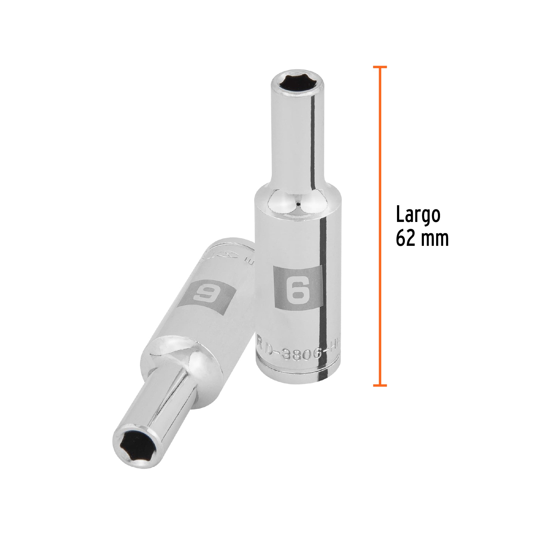 DADO LARGO DE 6 MILIMETROS CON 6 PUNTAS Y CUADRO DE 3/8" TRUPER