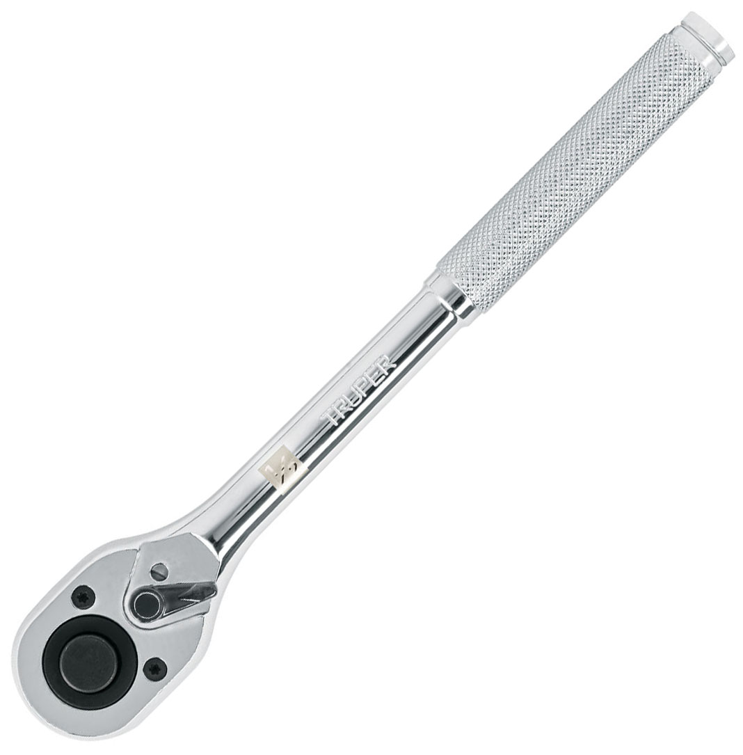 Sistema reversible con selector de cambio de giro y botón de liberación rápida.