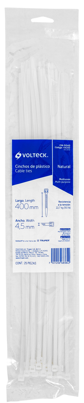 Imagen de BOLSA CON 25 CINCHOS PLASTICOS DE 50 LBS DE 400 X 4.5 MM NATURALES VOLTEK, imagen 1