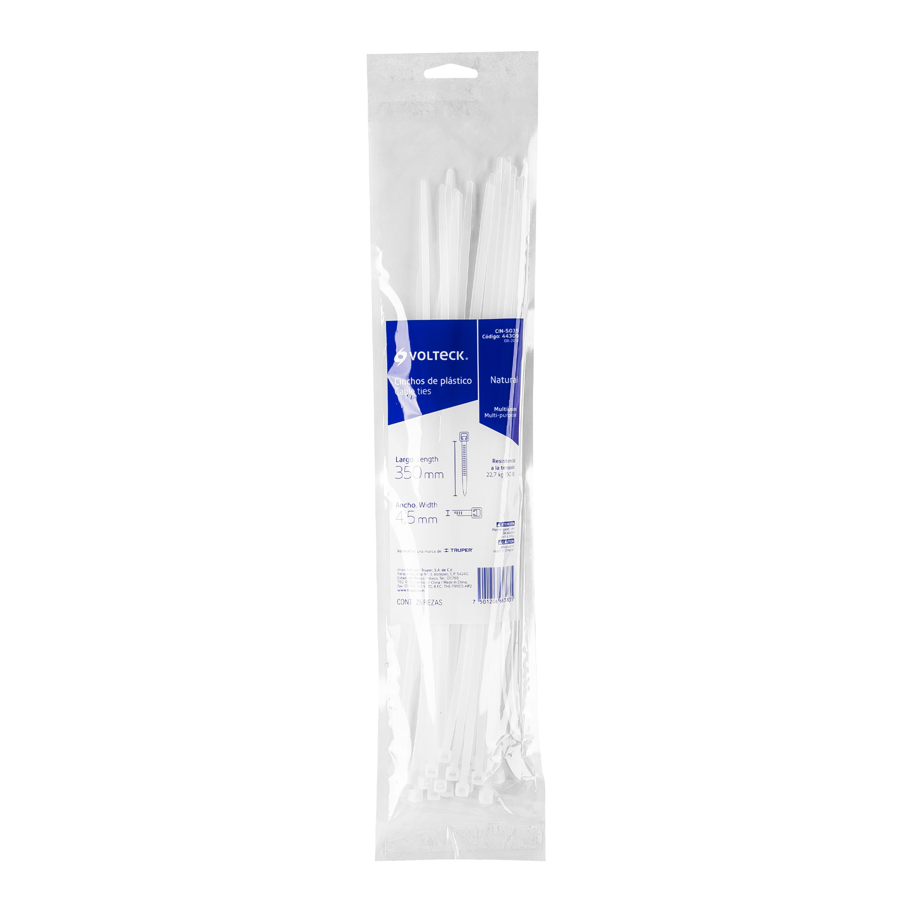 BOLSA CON 25 CINCHOS PLASTICOS DE 50 LBS DE 350 X 4.5 MM NATURALES VOLTEK