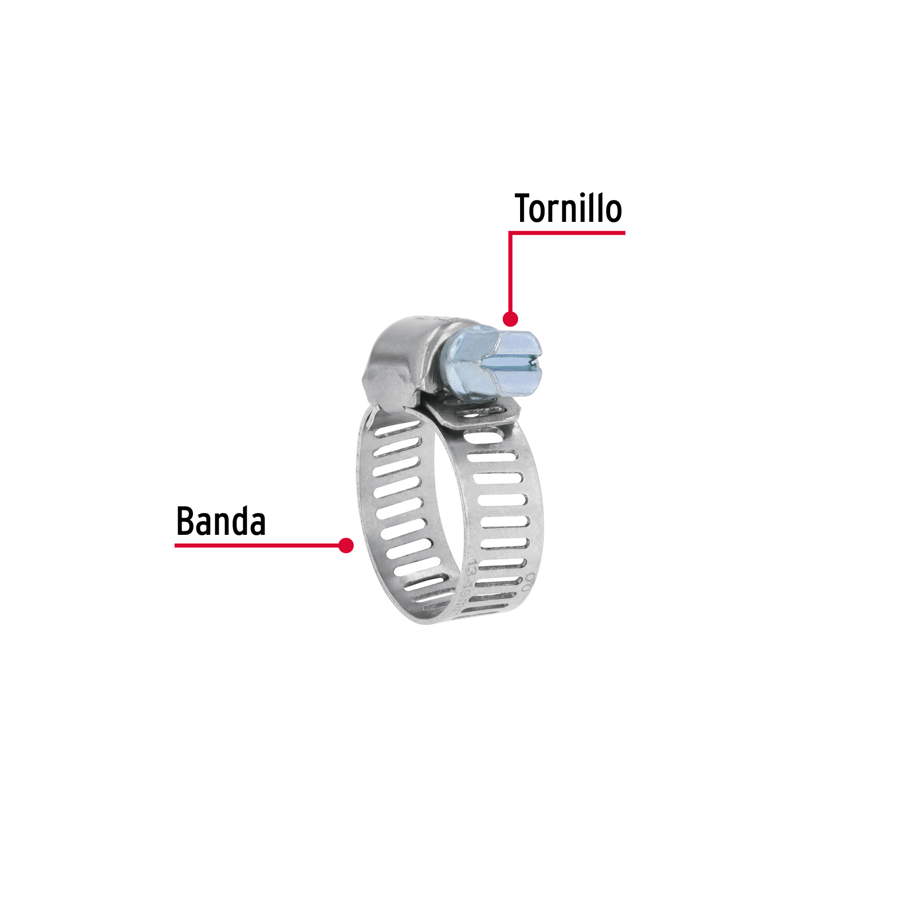 • DescripciónBanda de acero inoxidable. Tornillo de acero. Para uso automotriz, industrial y doméstico.