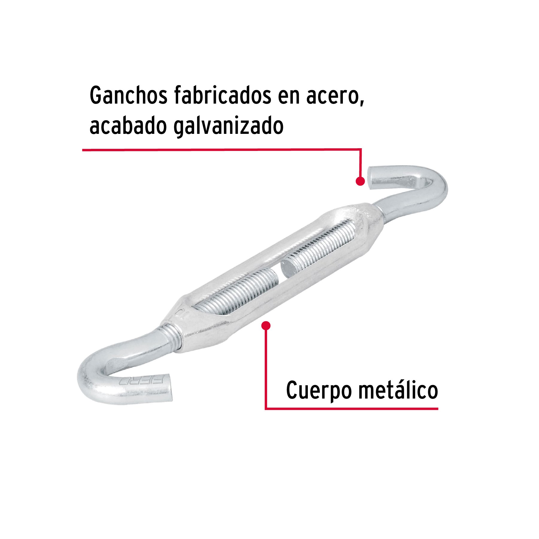 Cuerpo metálico. Ganchos fabricados en acero, acabado galvanizado. Para tensar o emparejar cables. No exceder límite marcado.