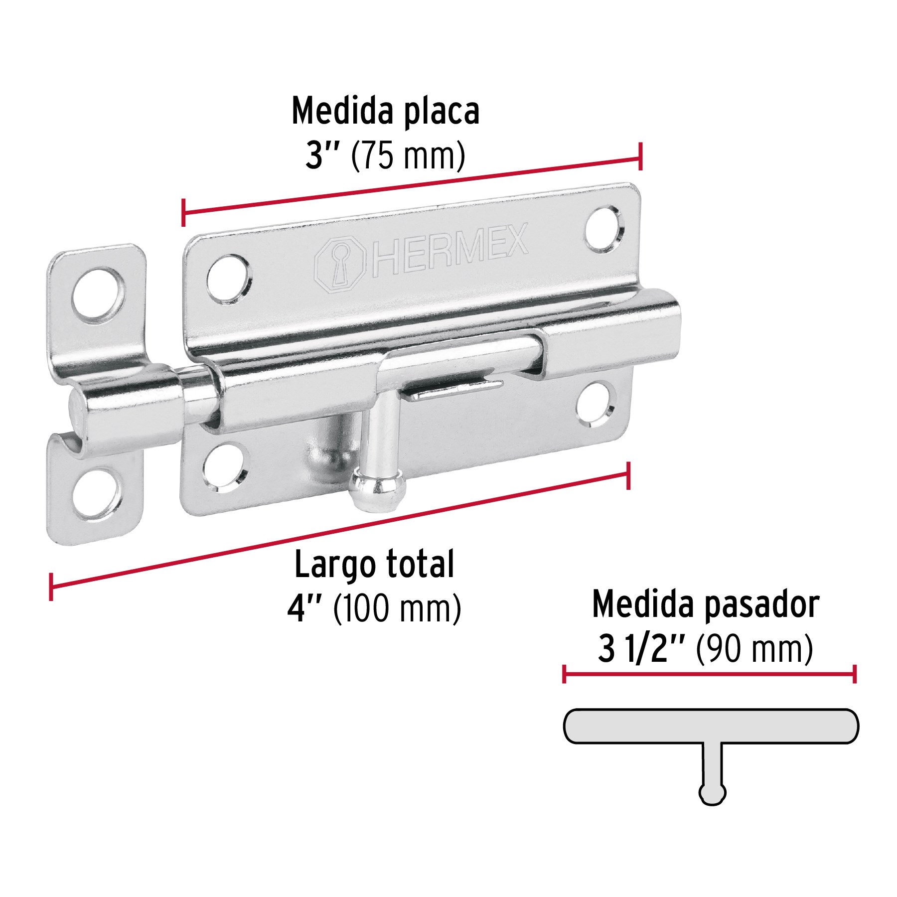 PASADOR DE BARRIL DE ACERO EN CROMO DE 4" HERMEX