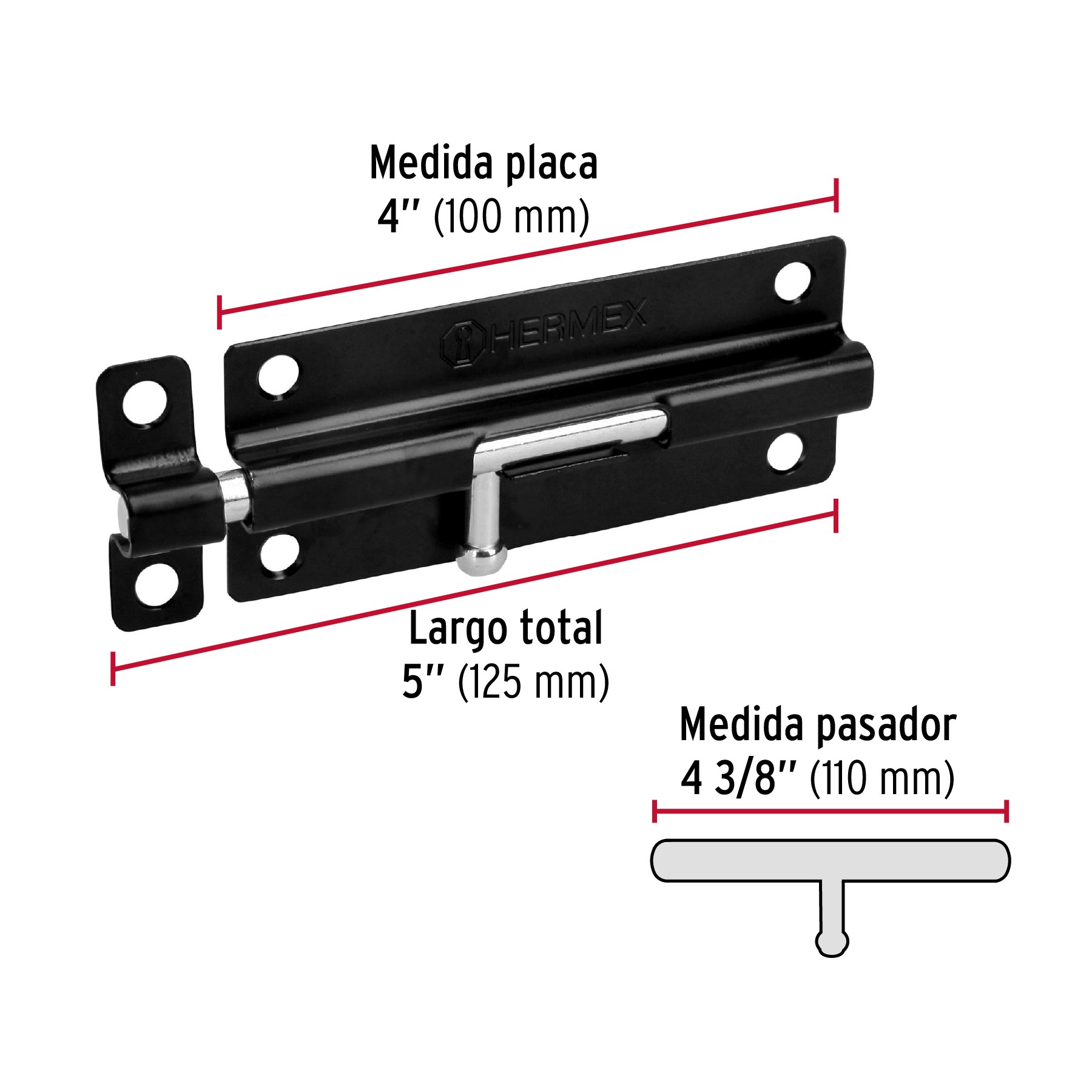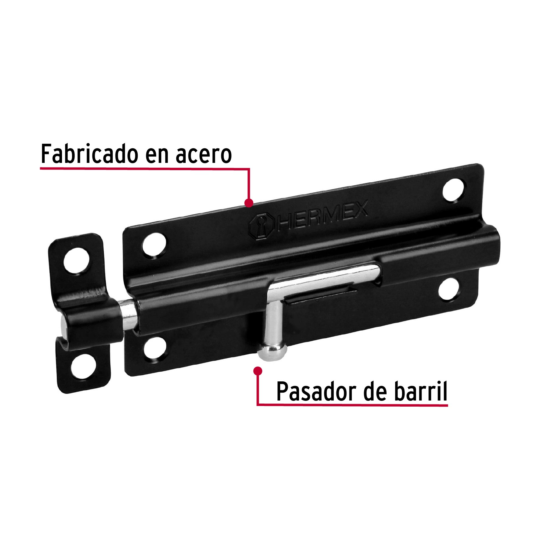 PASADOR DE BARRIL DE 5" DE ACERO EN ACABADO NEGRO HERMEX