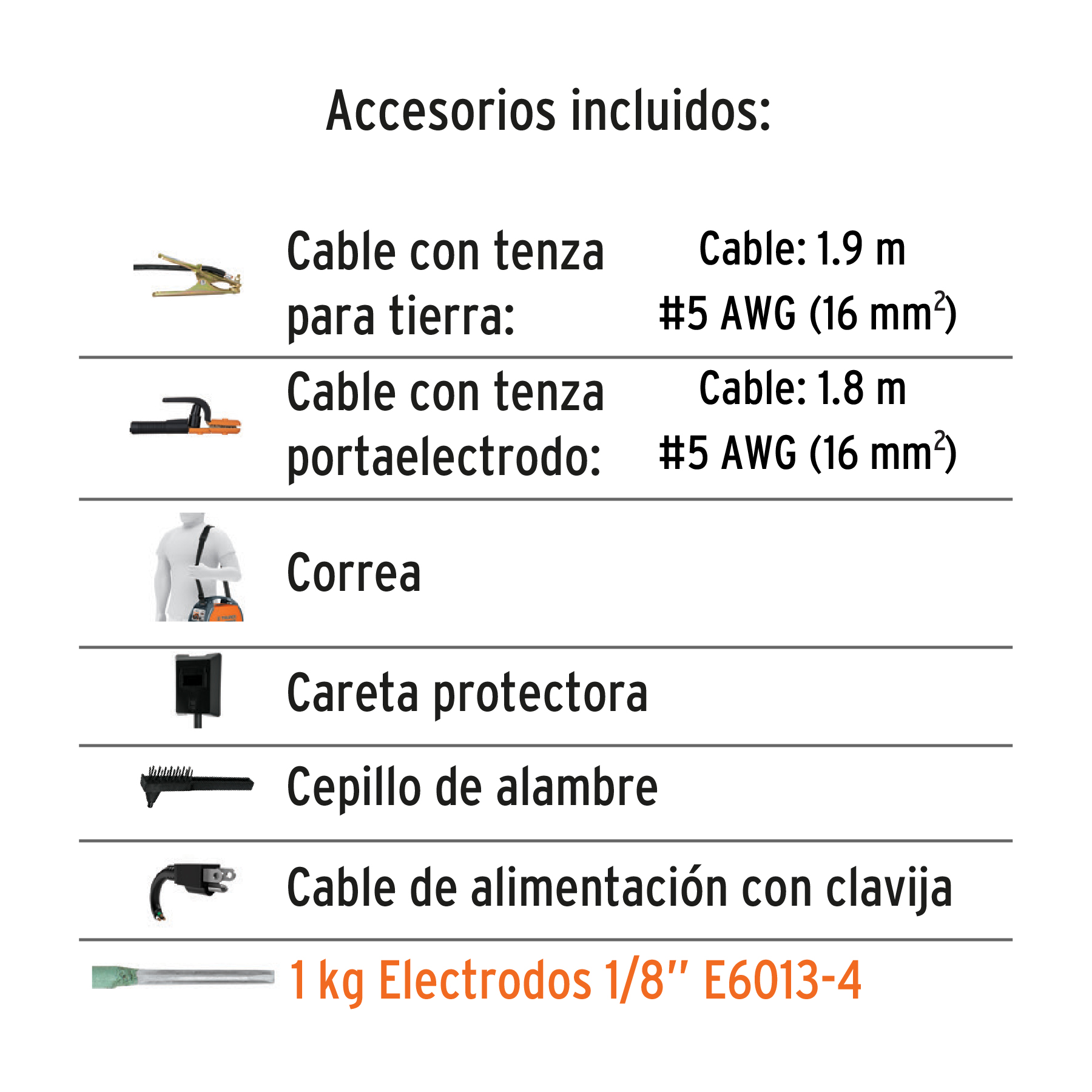 Ligera, compacta y fácil de trasportar, más eficiente (mayor ciclo de trabajo) y con menor consumo eléctrico que una soldadora convencional. Para proceso de soldadura de electrodo revestido (SMAW - MMA). Sistema de adaptación automática BI-VOLTAJE 127-220 V, detecta y se adapta al voltaje de entrada, sin necesidad que el usuario cambie conectores o manipule controles. Rango de corriente: 1 Fase (20 A - 110 A CD) | 2 Fases (20 A - 130 A CD). Bornes de cambio rápido: 3/8".