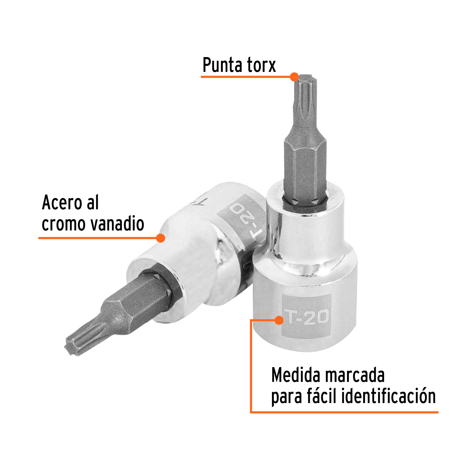 Fabricado en acero al cromo vanadio con acabado pulido espejo resistente a la oxidación y de fácil limpieza. Sistema de sujeción Truper-Drive con puntas convexas que aseguran y aumentan el torque sin dañar tuercas ni cabezas de tornillos. Medida marcada para fácil identificación.