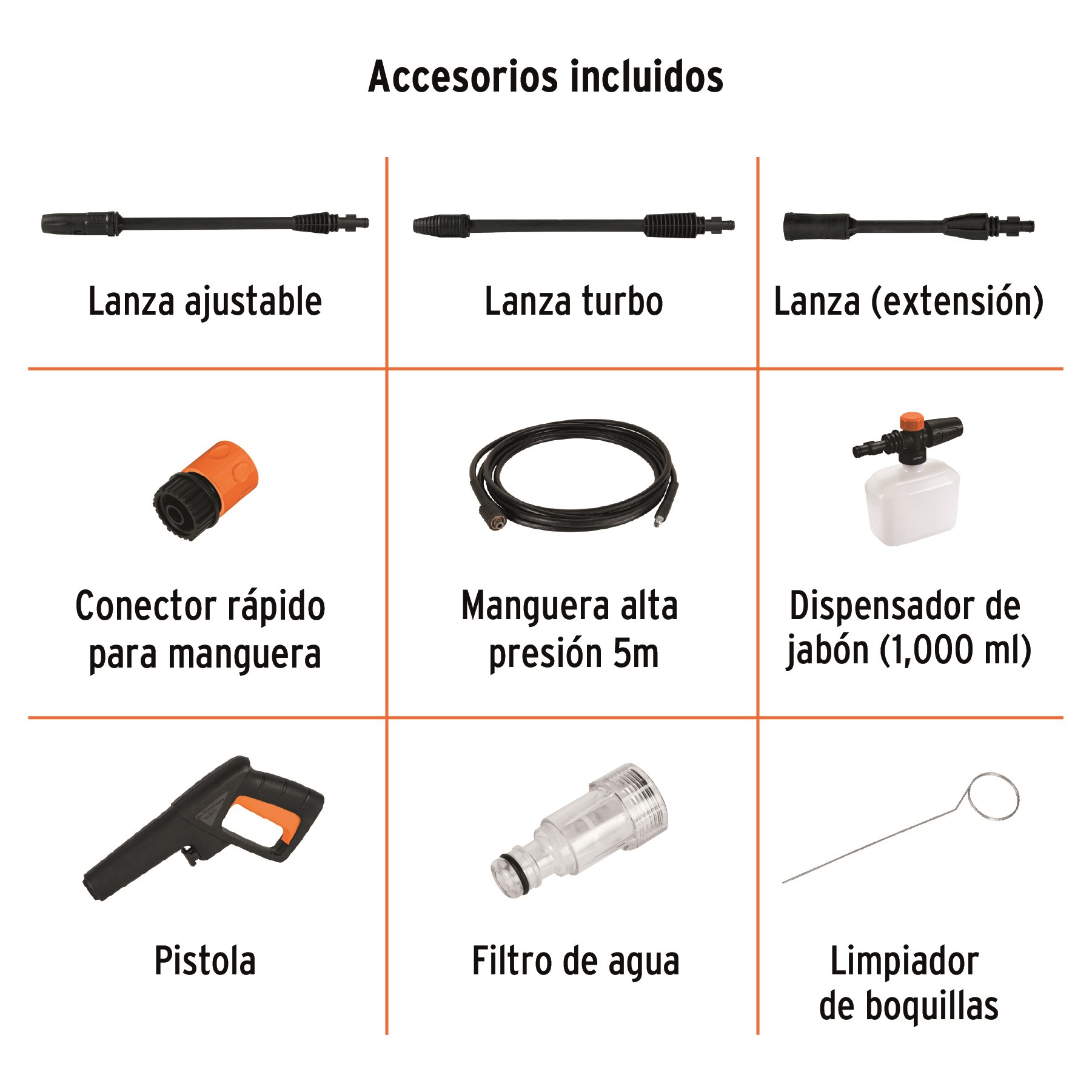 DescripciónMotor de 1.9 HP. Sistema de paro automático. Flujo máximo de agua 288 L/h. Cable de alimentación de 5 m. Cañón de espuma (550 ml).Comentarios0 Motor de 1.9 HP. Sistema de paro automático. Flujo máximo de agua 288 L/h. Cable de alimentación de 5 m. Cañón de espuma (550 ml). Escribe una reseña No hay comentarios aún