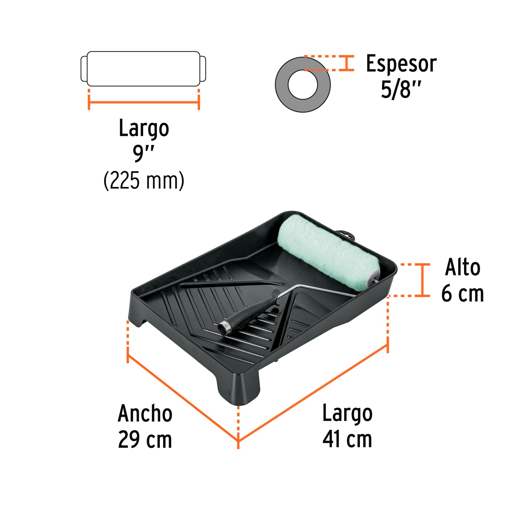 Rodillo profesional ROPI-915 de 9" 2X más eficiente cubre áreas de mayor tamaño en menos tiempo, uso general para todo tipo de pinturas y superficies poco rugosas. Felpa de poliéster alta densidad en color verde. Maneral de acero galvanizado y mango de polipropileno. Con canales para escurrimiento.
