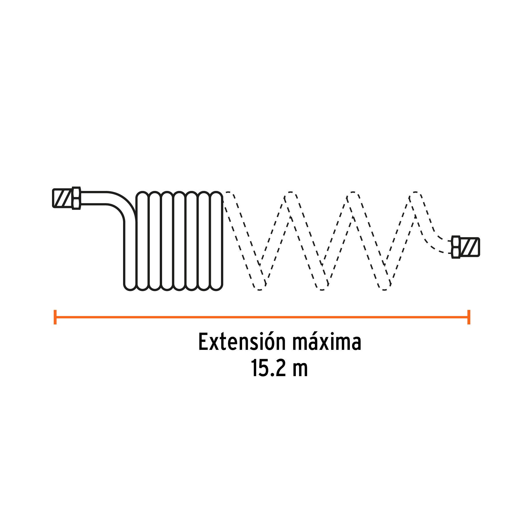 Fabricada en poliuretano para mayor resistencia a la abrasión. Manga antitorsión para evitar roturas y reducir desgaste. Presión máxima de trabajo: 200 psi / 1,378 kPa. Conector rápido metálico (macho) y cople rápido. Ligera y fácil de manipular.