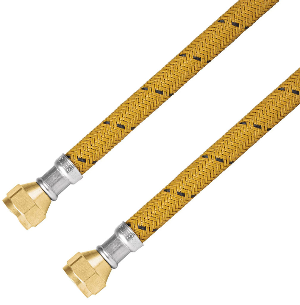 • DescripciónTuercas 3/8" x 3/8" de latón. Espigas de latón resistentes a la corrosión. Férulas de acero inoxidable. Trenzado con vinilo sobre manguera de hule NBR para mayor durabilidad y resistencia. Ideal para conectar a reguladores de gas de baja presión.