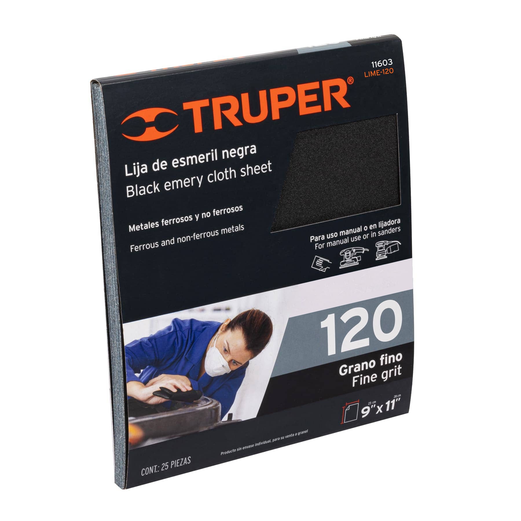 LIJA DE ESMERIL NEGRA GRANO 120 DE OXIDO DE ALUMINIO TRUPER