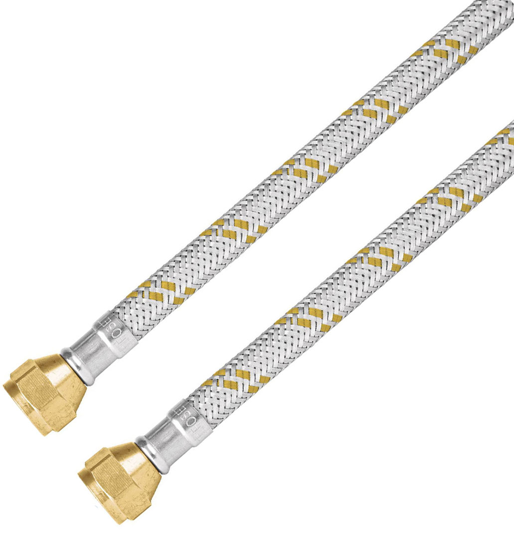 Trenzado de acero inoxidable sobre manguera de hule NBR para mayor durabilidad y resistencia.