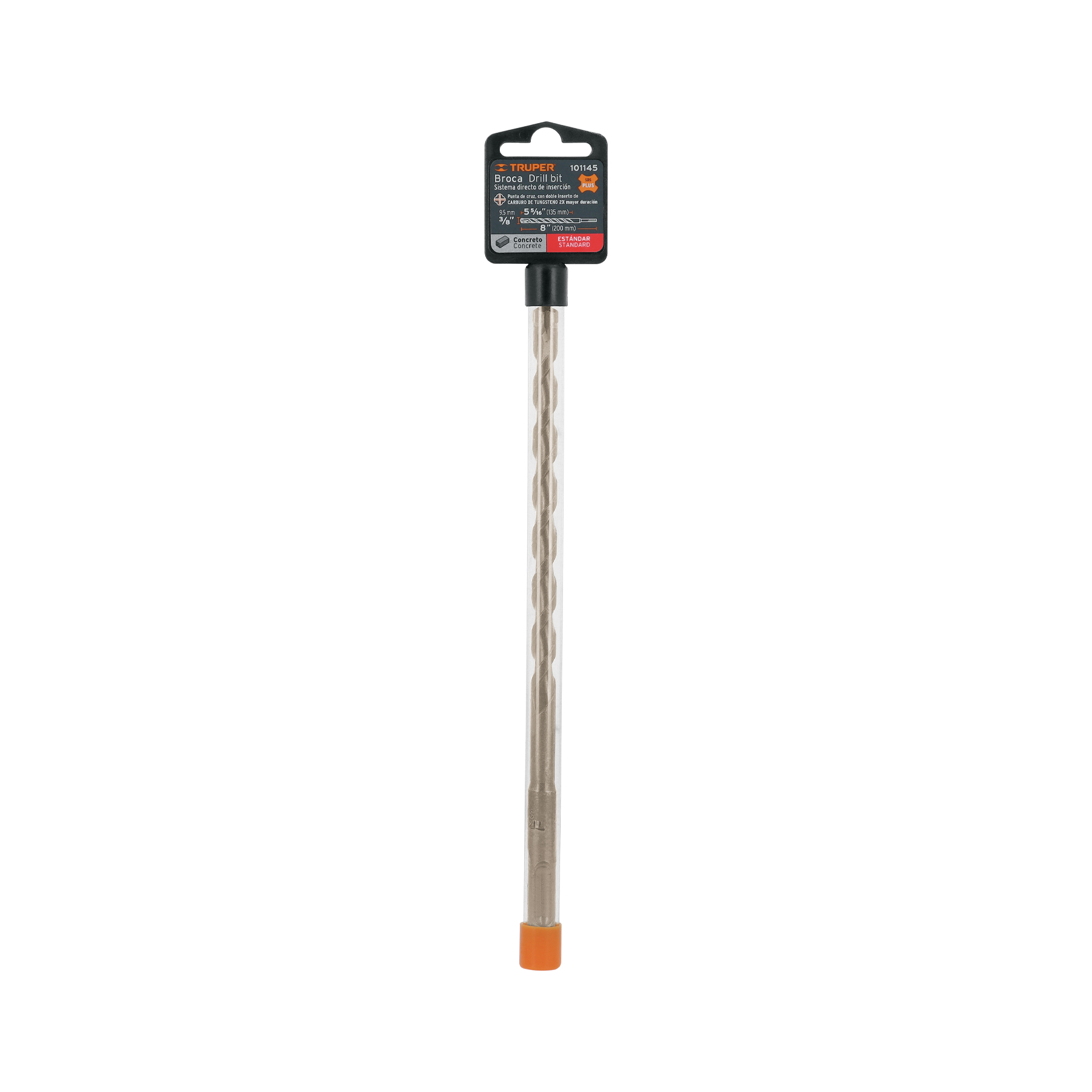 Punta de cruz, tecnología con doble inserto de carburo para mayor precisión de perforación, 2X mayor durabilidad que las brocas convencionales. Cuerpo de acero al cromo que ofrece mayor resistencia al calentamiento. Zanco compatible con la mayoría de rotomartillos SDS plus. Diseñada para evitar que se atore durante la perforación. Empaque para prevenir el óxido en zonas de alta salinidad.