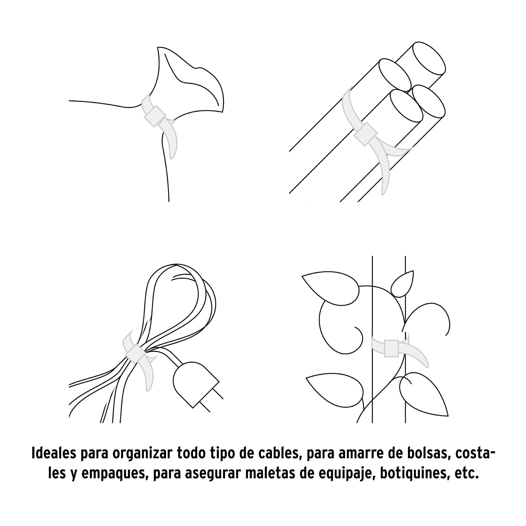 Útiles para sujetar, amarrar y ordenar cables eléctricos u otro tipo de objetos.