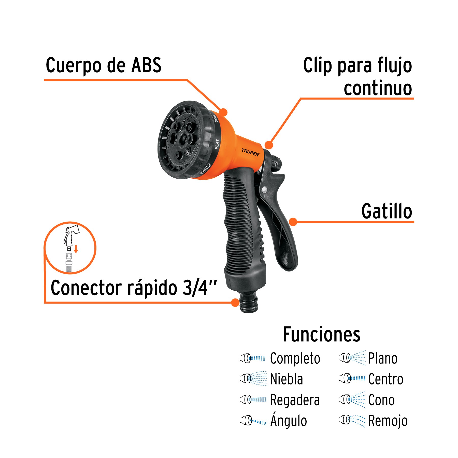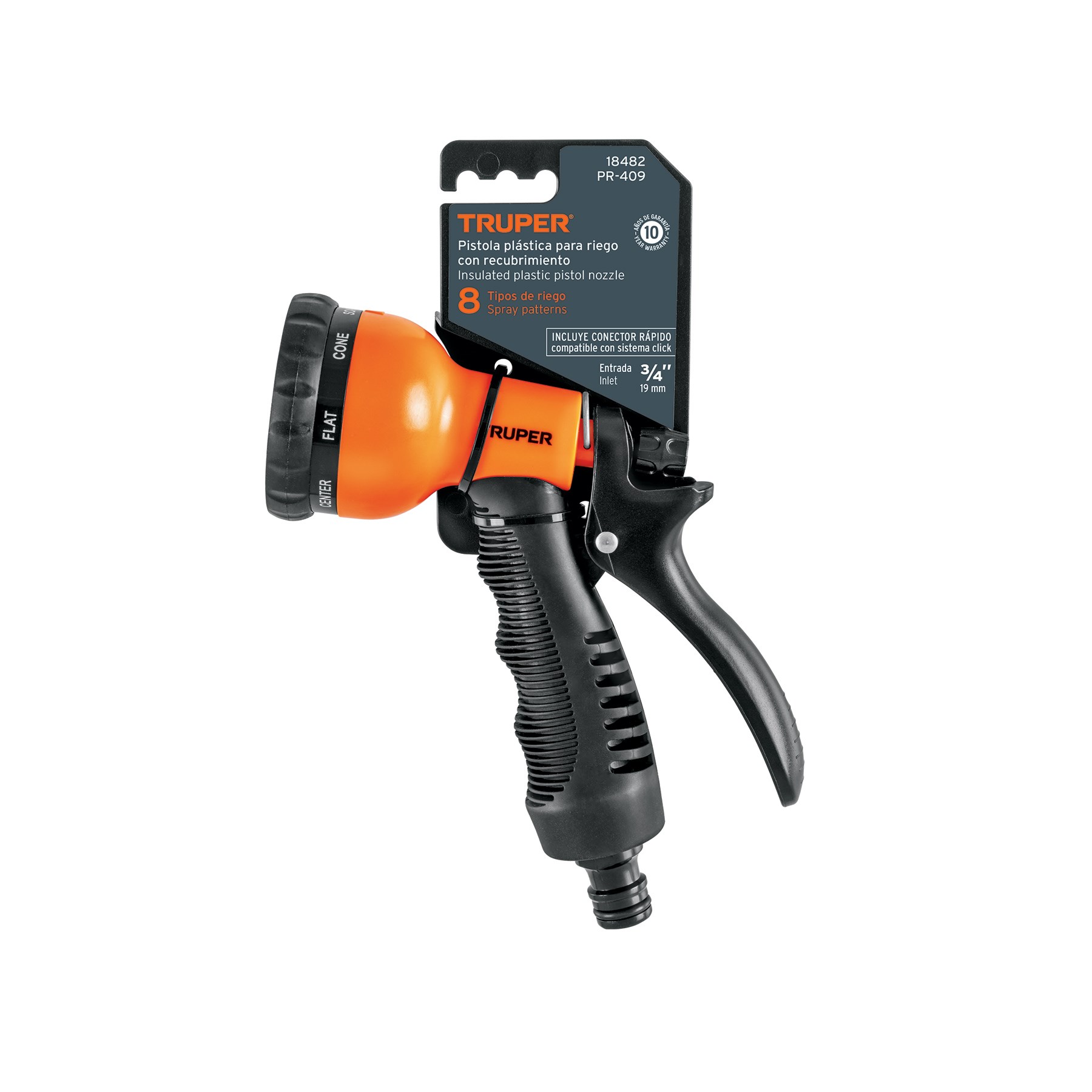 PISTOLA PARA RIEGO DE 8 FUNCIONES PLASTICA CON RECUBRIMIENTOTRUPER