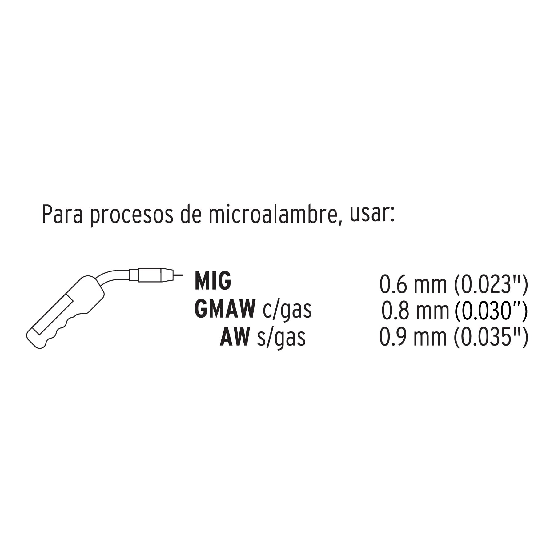Para proceso de soldadura microalambre MIG con gas, GMAW sin gas y FCAW.