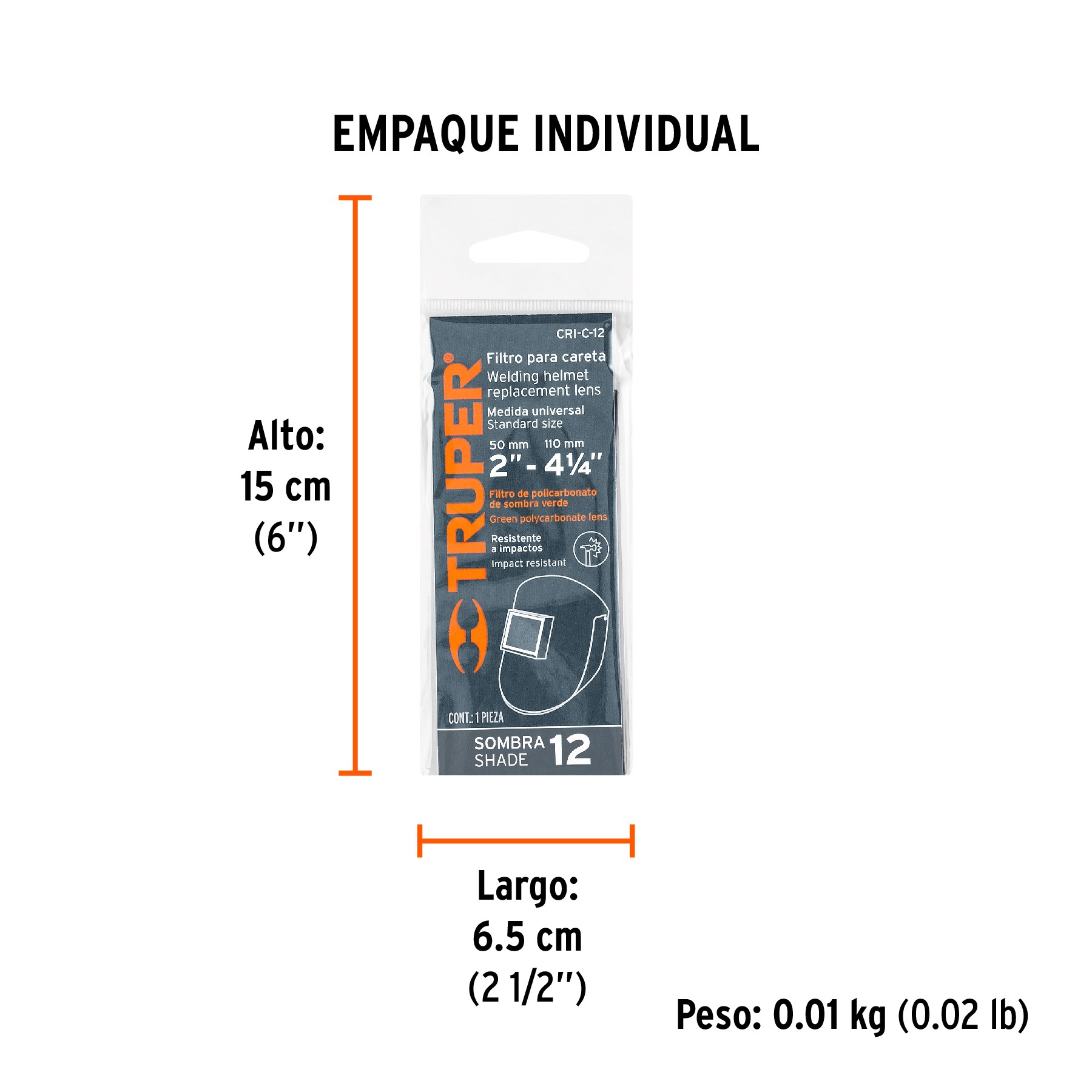 • DescripciónFabricado de policarbonato. Para caretas de soldar abatibles modelos CASO-3 marca Truper® y CASO-300-P marca Pretul® .
