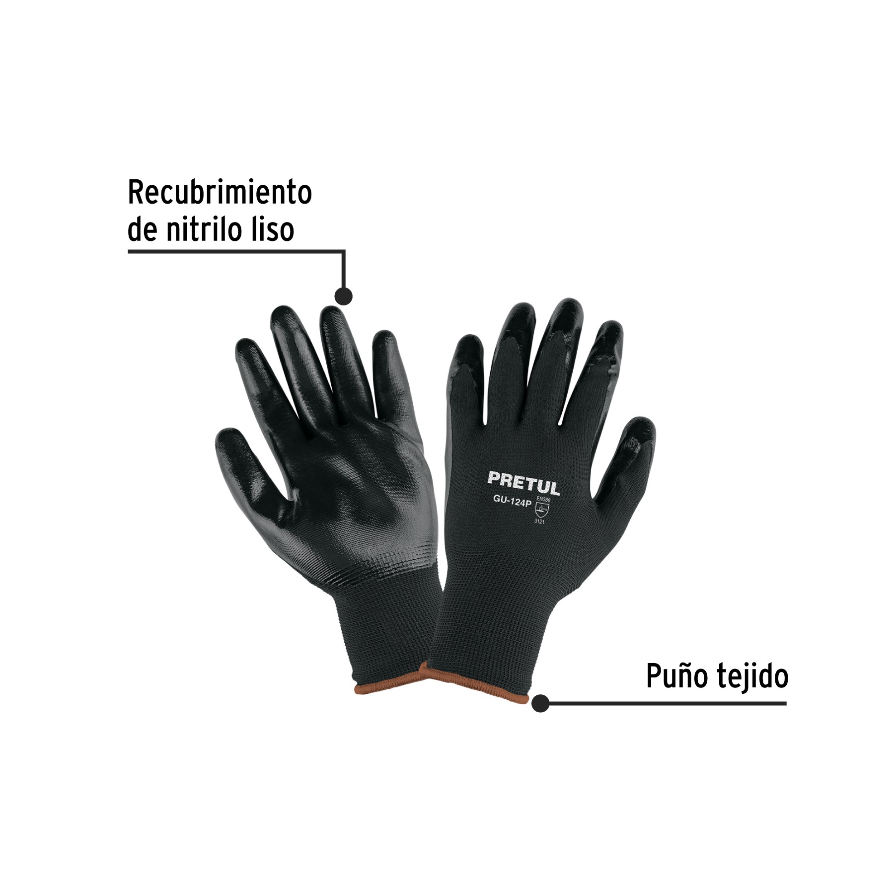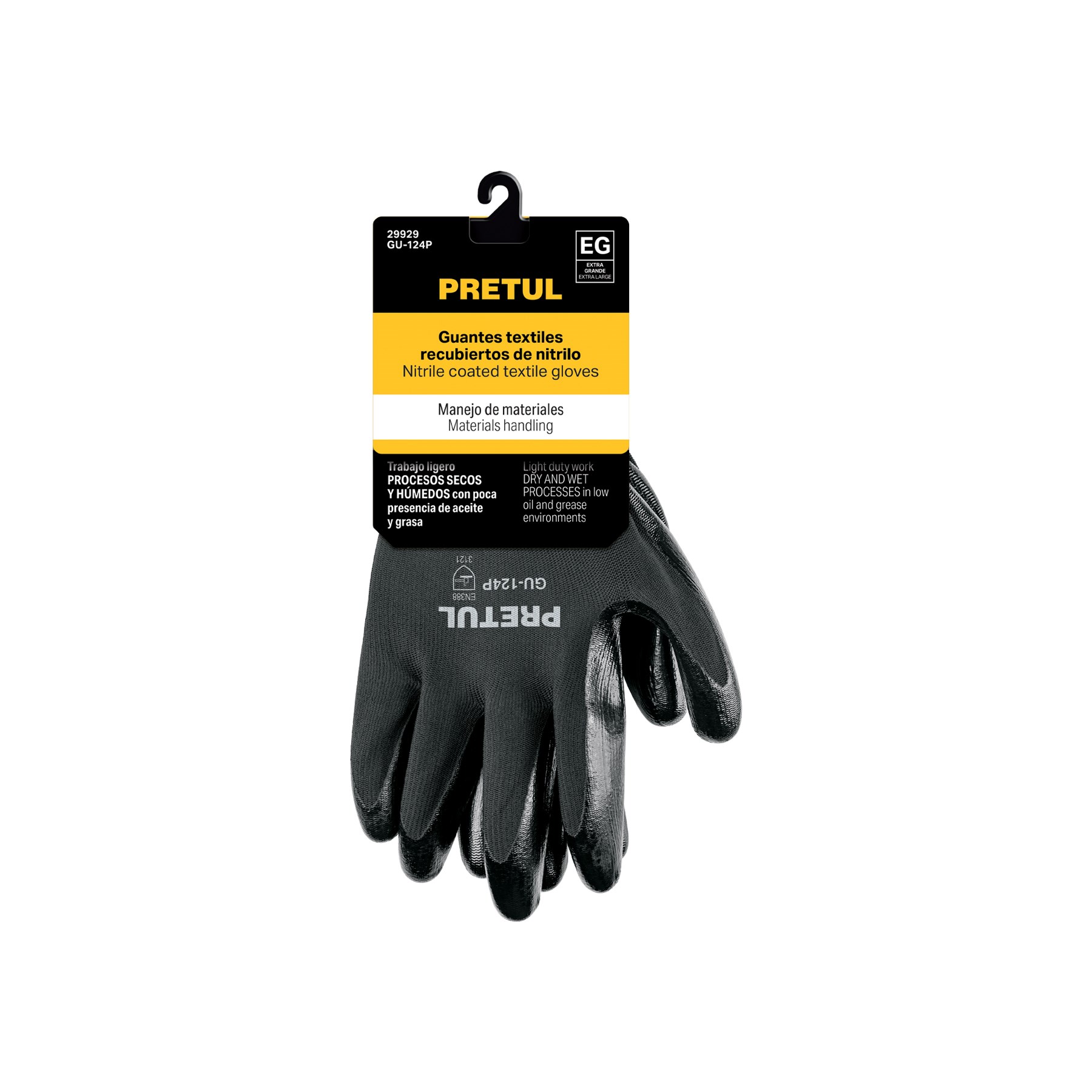 Imagen de GUANTES DE NYLON RECUBIERTOS DE NITRILO TALLA EXTRA GRANDE PRETUL, imagen 1